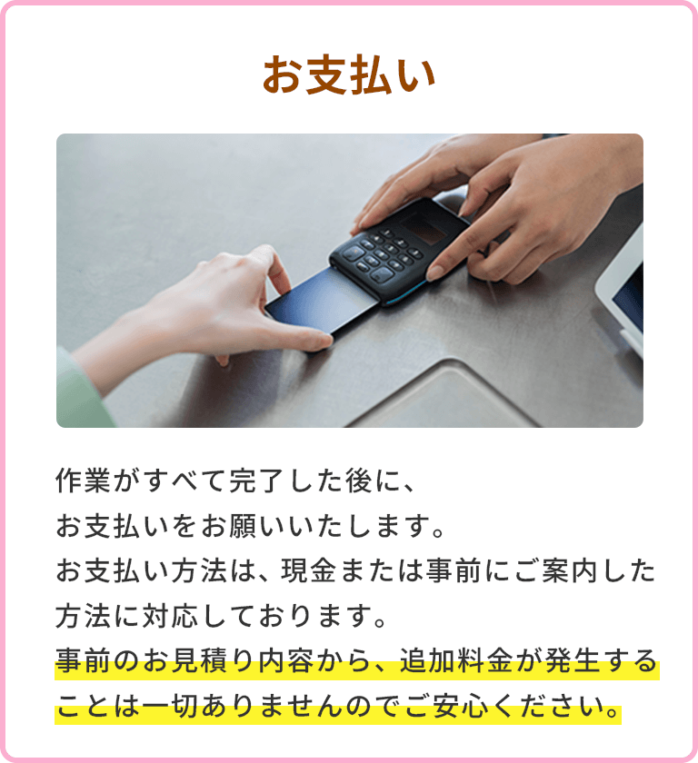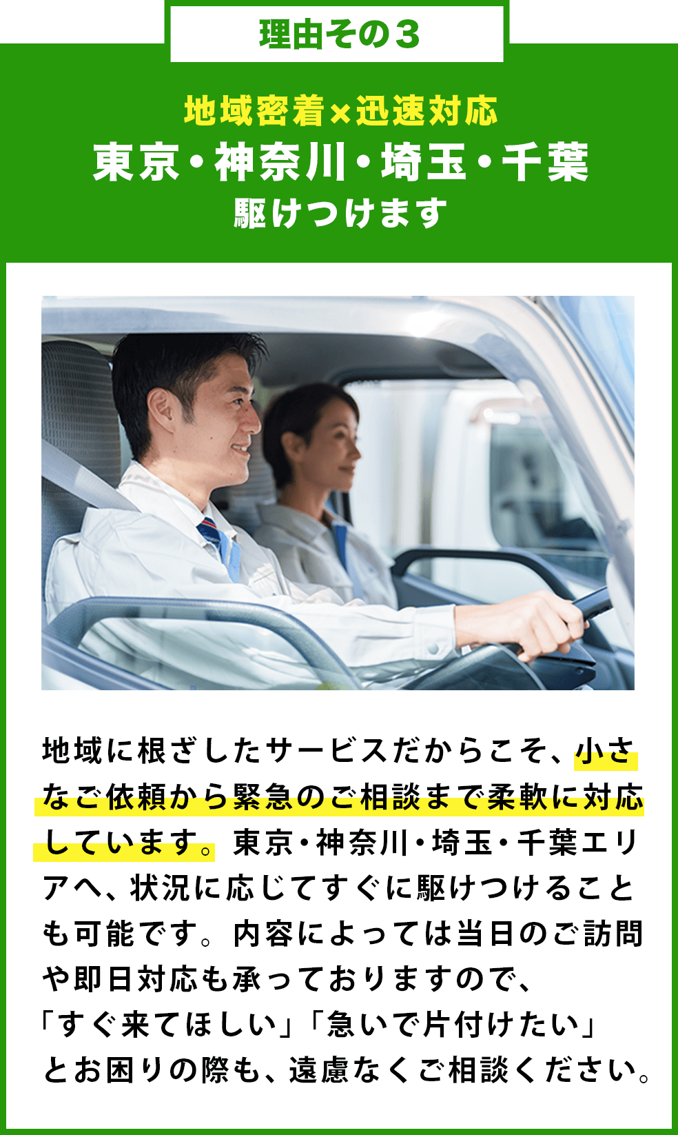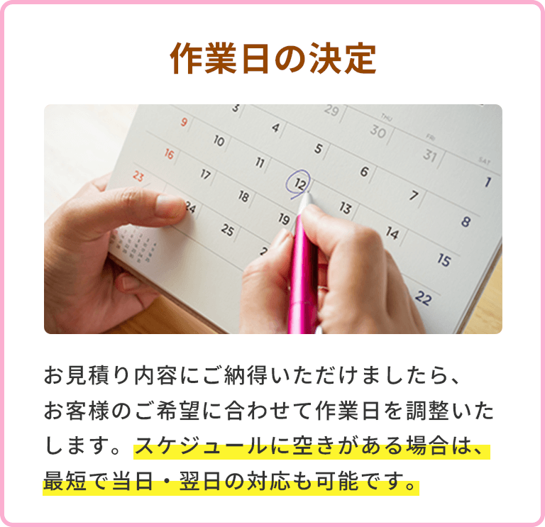 最短で当日対応できる場合もありますので、まずはご連絡ください。