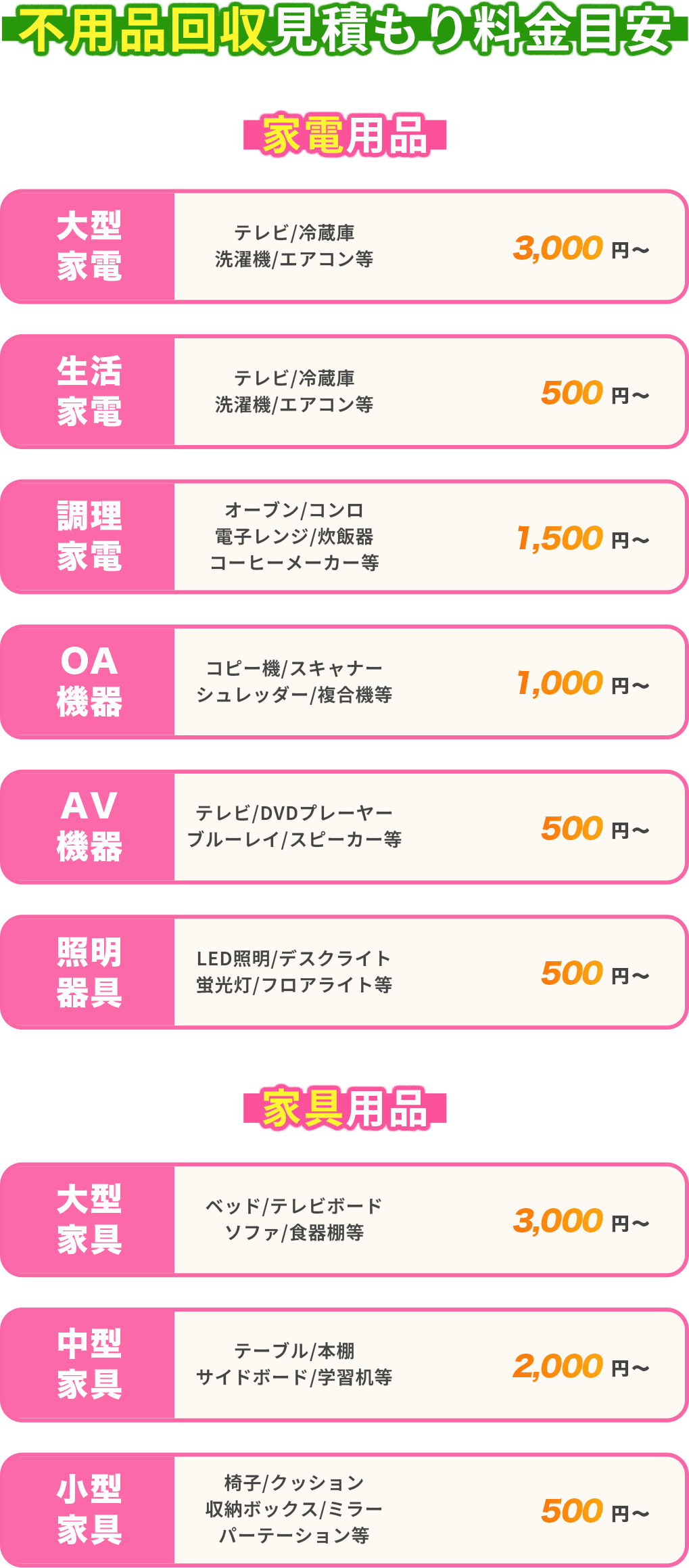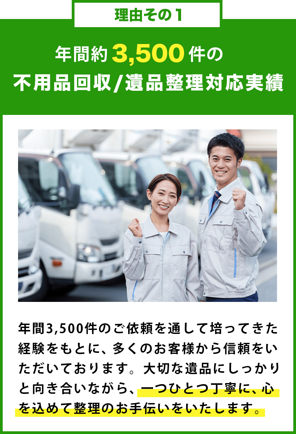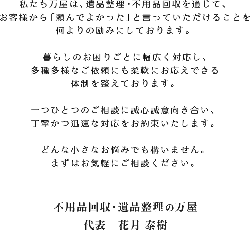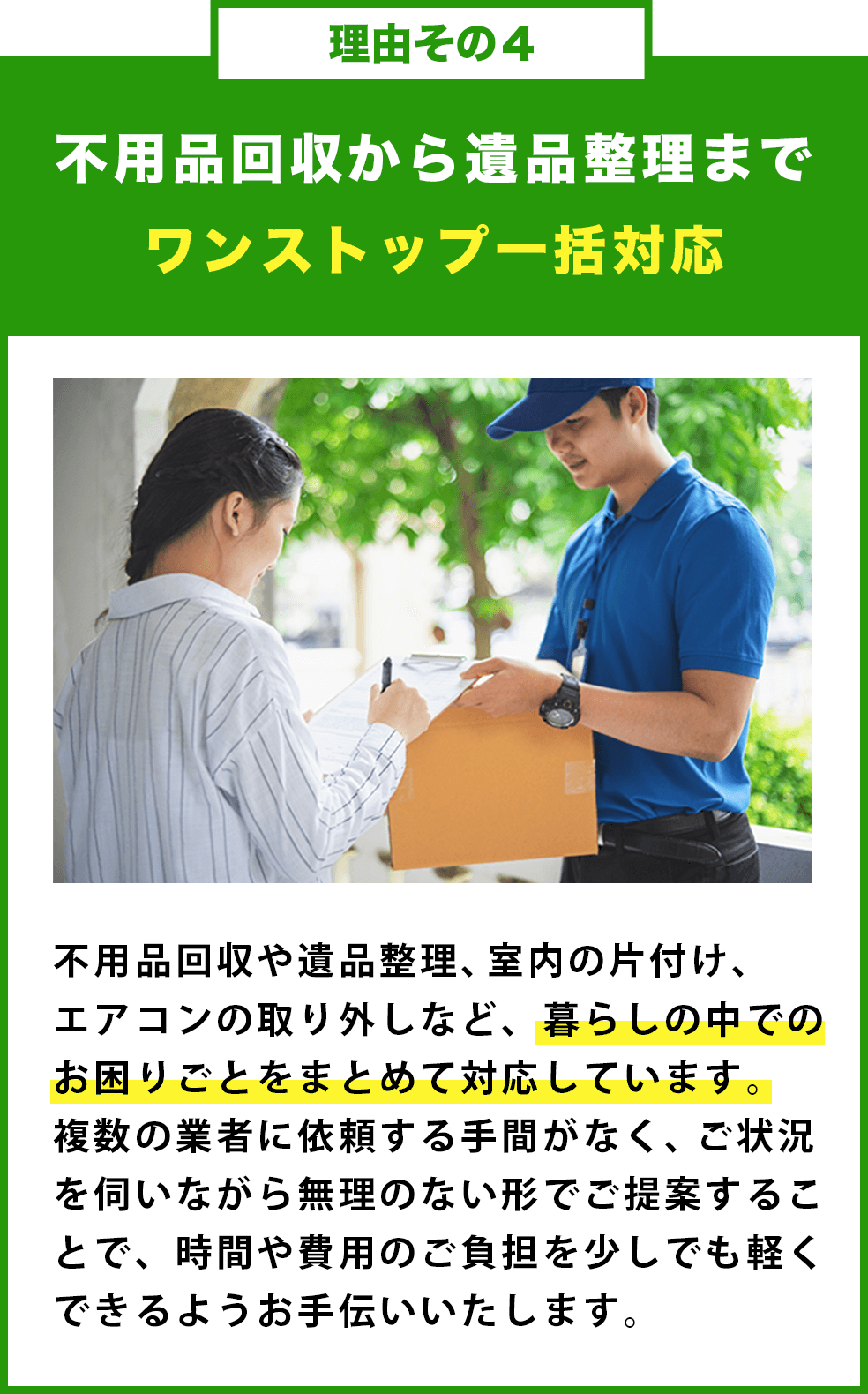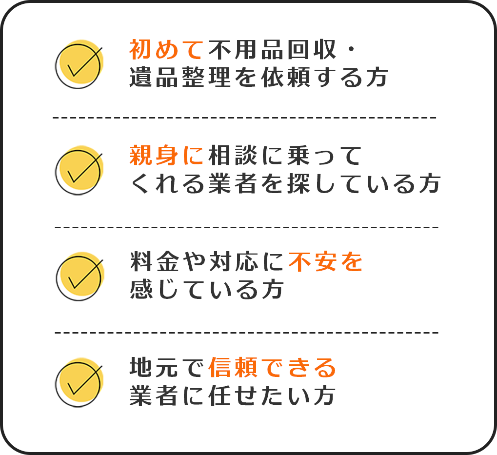 基本的に多くの不用品に対応しておりますが、法律により回収できないものが一部ございます。具体的には、医療廃棄物・危険物・生き物・著しく腐敗した食品などは回収できません。